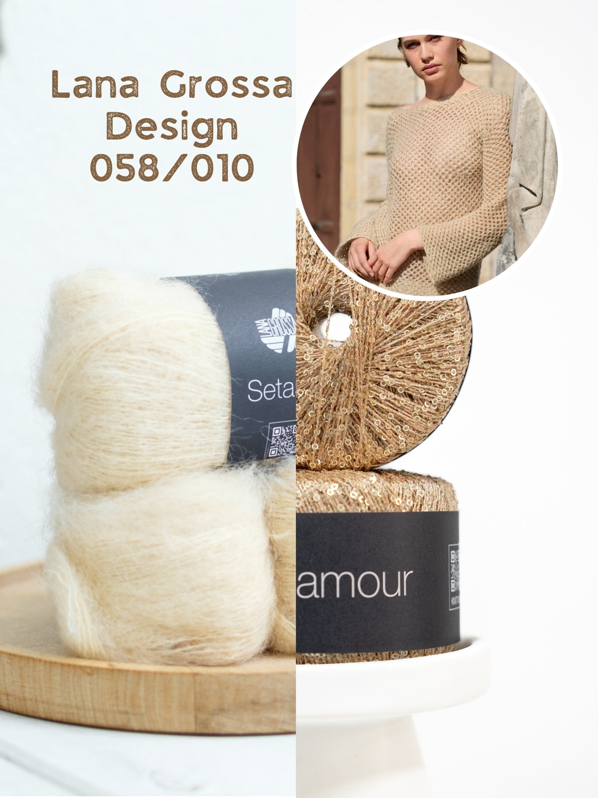 Het pakket bestaat uit 6/6/7/7 bollen Setasuri, 10/11/12/13 bollen Glamour en het Nera nr. 2 magazine van Lana Grossa. De benodigde haaknaald (4mm) kun je hieronder toevoegen aan je winkelmandje.
