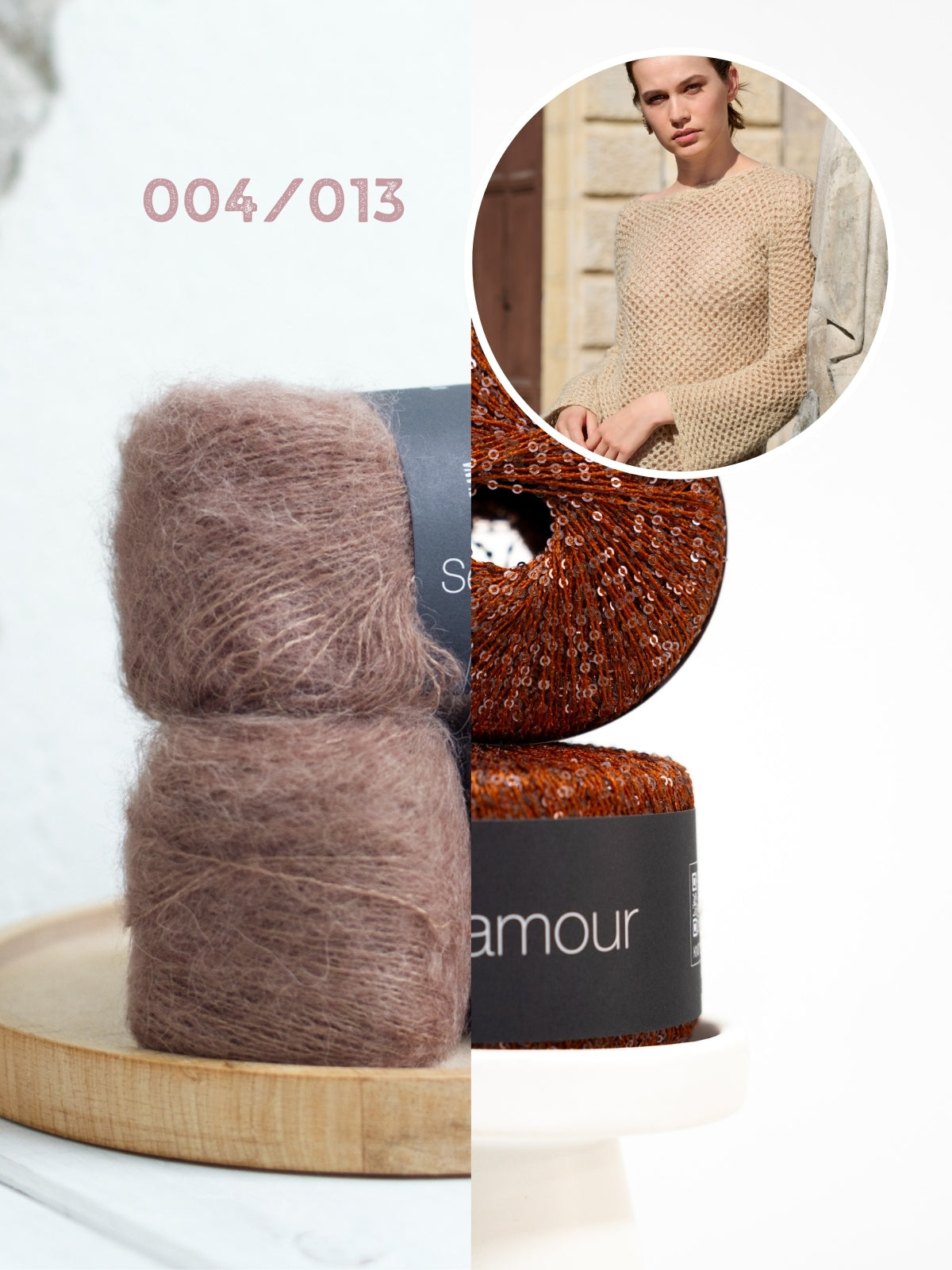 De trui wordt gehaakt met Setasuri (69% suri alpaca, 31% zijde) en Glamour (55% polyamide, 45% polyester). Het patroon is uitgeschreven in maat 36 t/m 50.