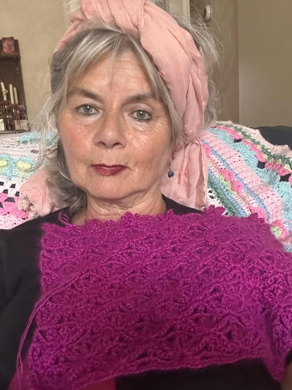 Deze sjaal wordt gehaakt in een prachtig ajourpatroon.