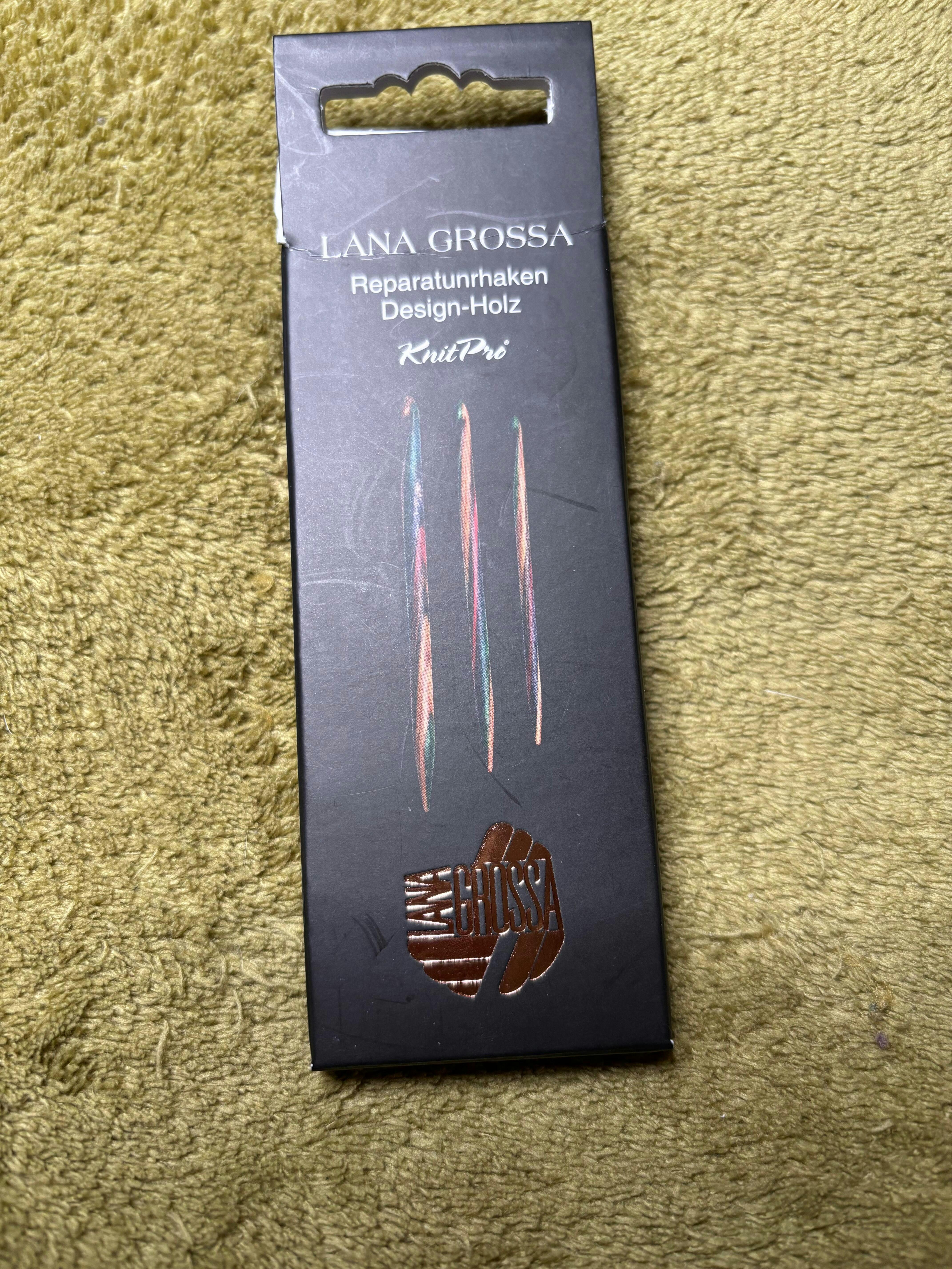 Naalden met aan de ene kant een breipunt en aan de andere kant een haak, handig om steken mee op te halen.