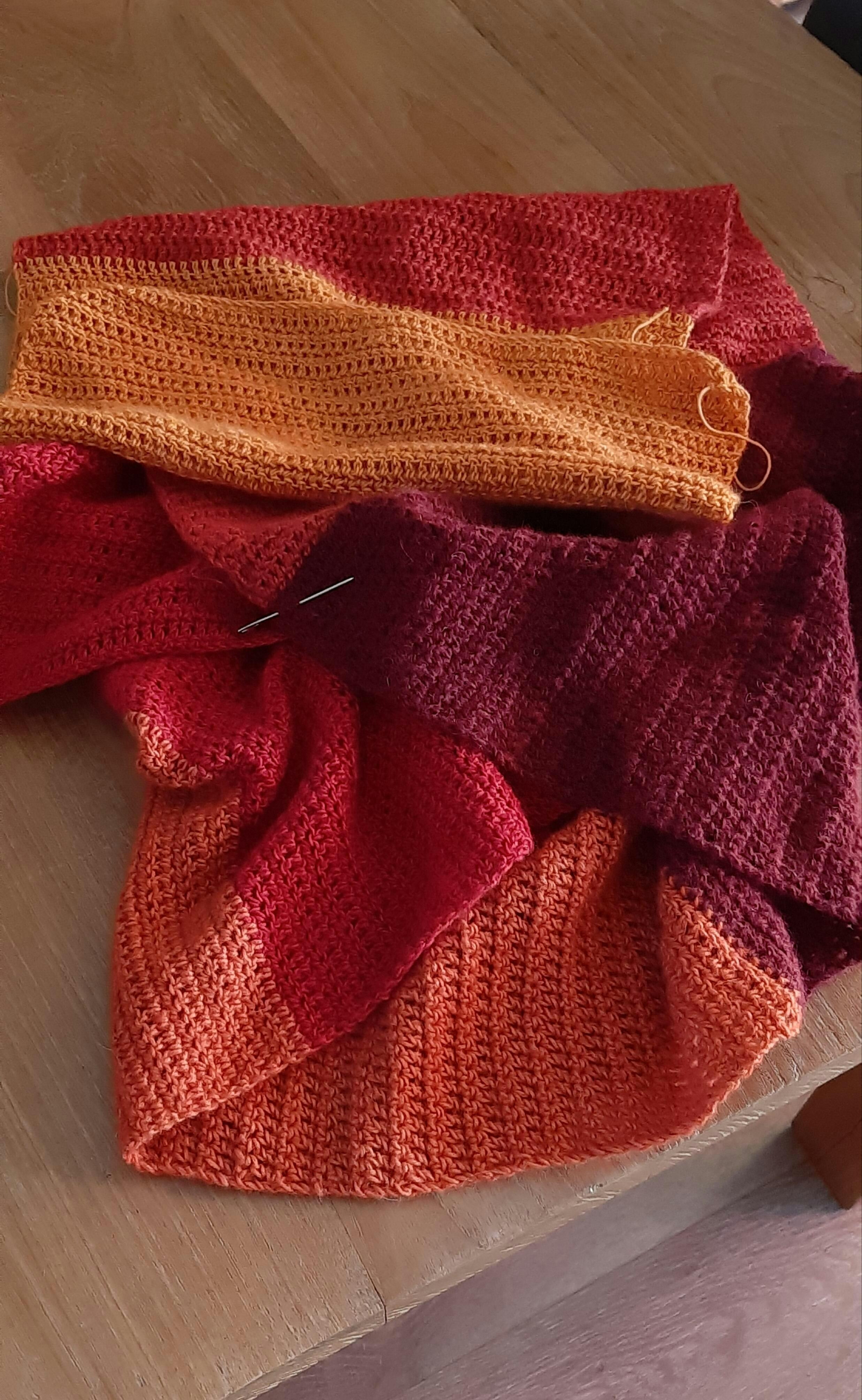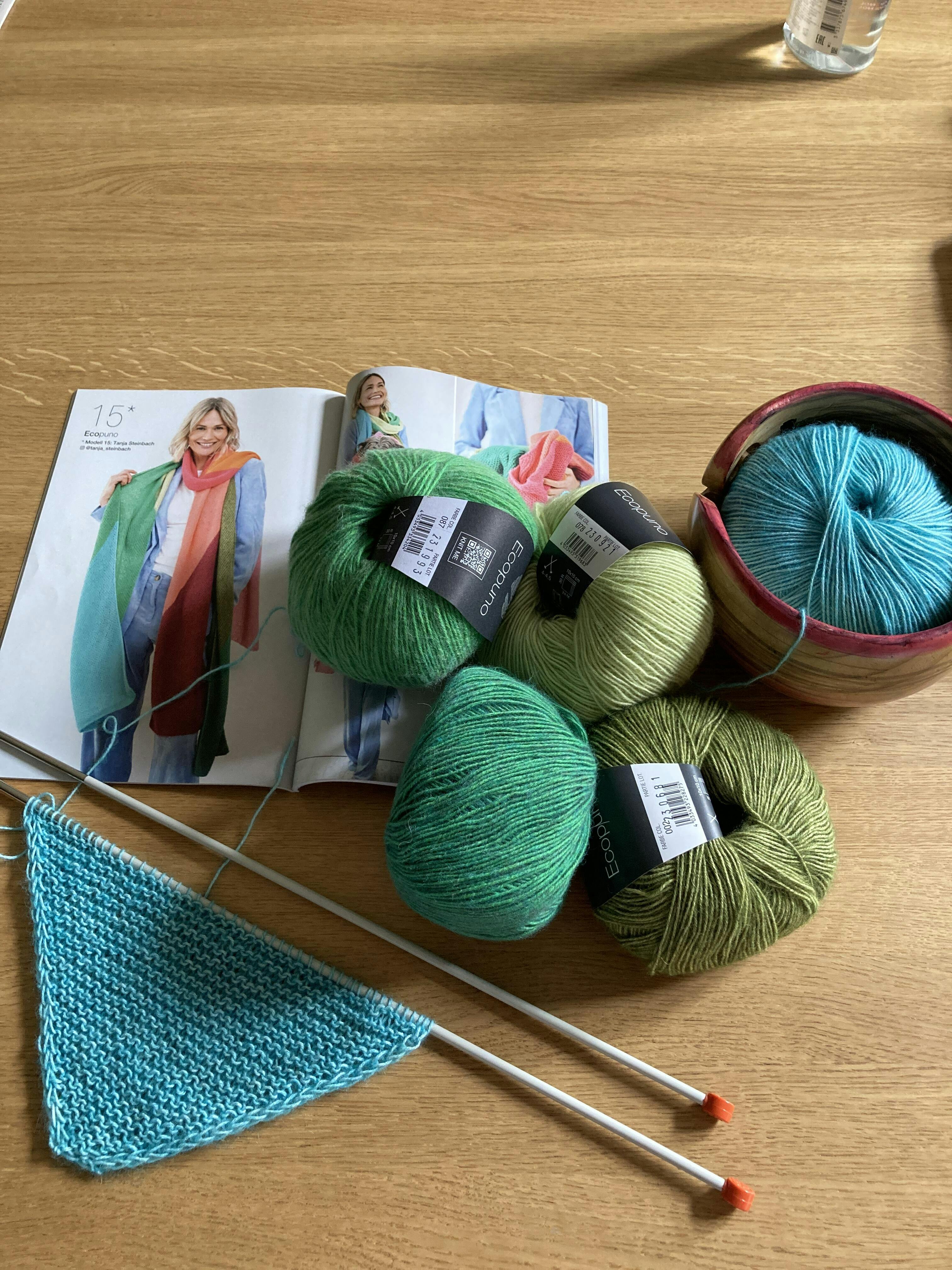 Hilde L. Prachtige kleurtjes , wol voor 3 sjaals. We hebben er met onze familie ineens een haak/breinamiddag van gemaakt. Nog wel nadenken of het haken of breien wordt. Keuzestress.🤭 Maar ik heb mijn handwerkverslaving hopelijk doorgegeven aan zussen en mama.❤️